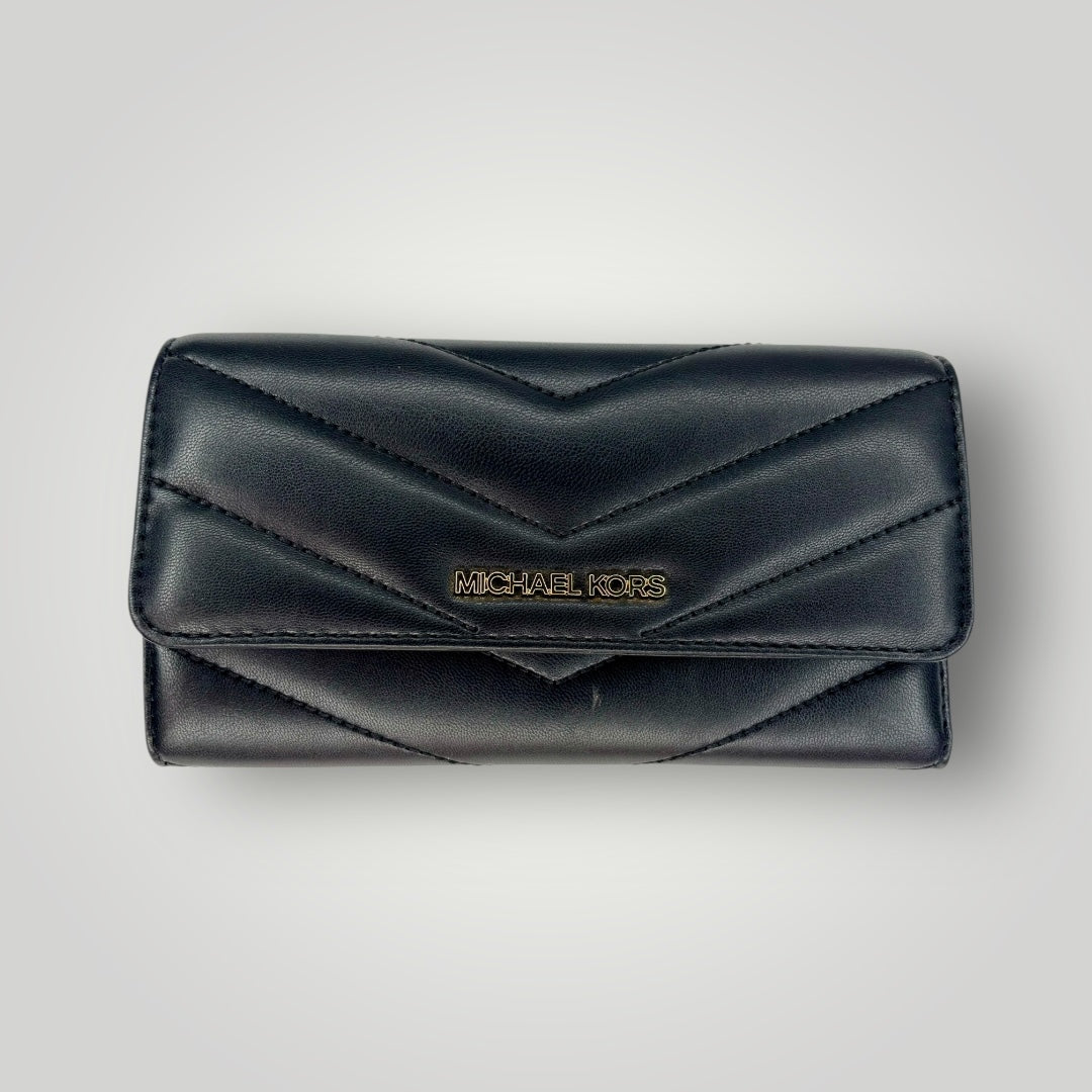 Elegancia y buen gusto se unen en esta cartera Michael Kors, confeccionada en piel suave de alta calidad. Su diseño limpio y refinado en color negro la convierte en el accesorio ideal para quienes aprecian la distinción en cada detalle.