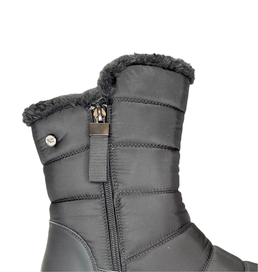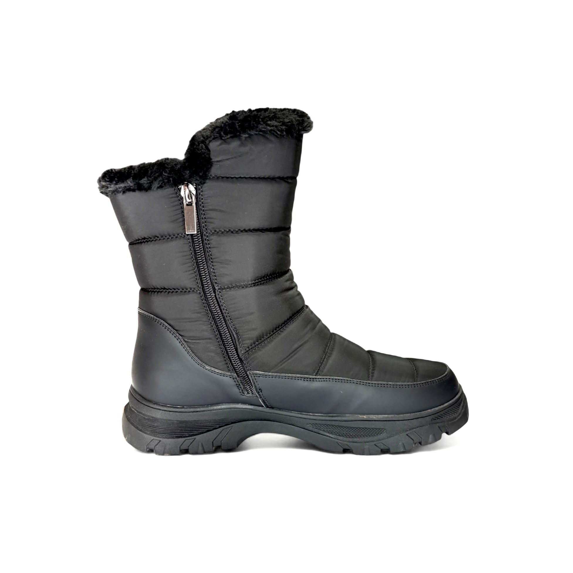 “Bota invernal negra con interior afelpado y cierre lateral. Ideal para el frío, combinando comodidad y protección.”