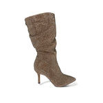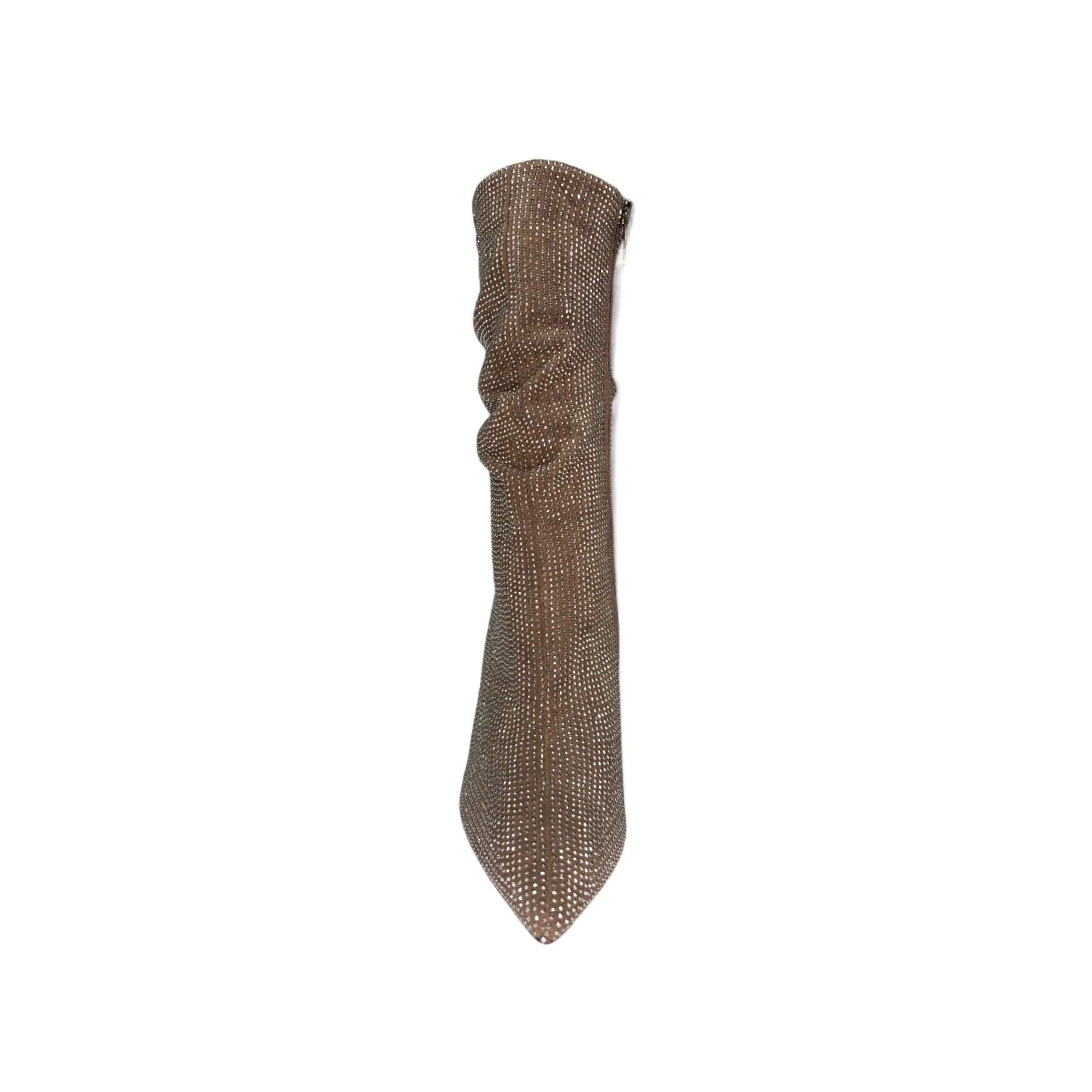 Bota alta efecto slouch en tono dorado con aplicaciones brillantes. Tacón delgado y estilo glam para destacar. Brillos, con plantilla confort