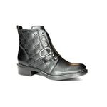 Eleva tu outfit con este botín negro para dama, con detalle de hebilla metálica y textura grabada que aporta elegancia y personalidad. Perfecto para combinar con looks casuales o más formales, siempre con comodidad.