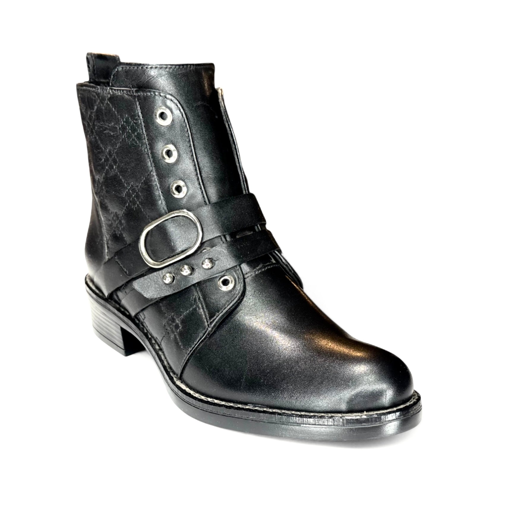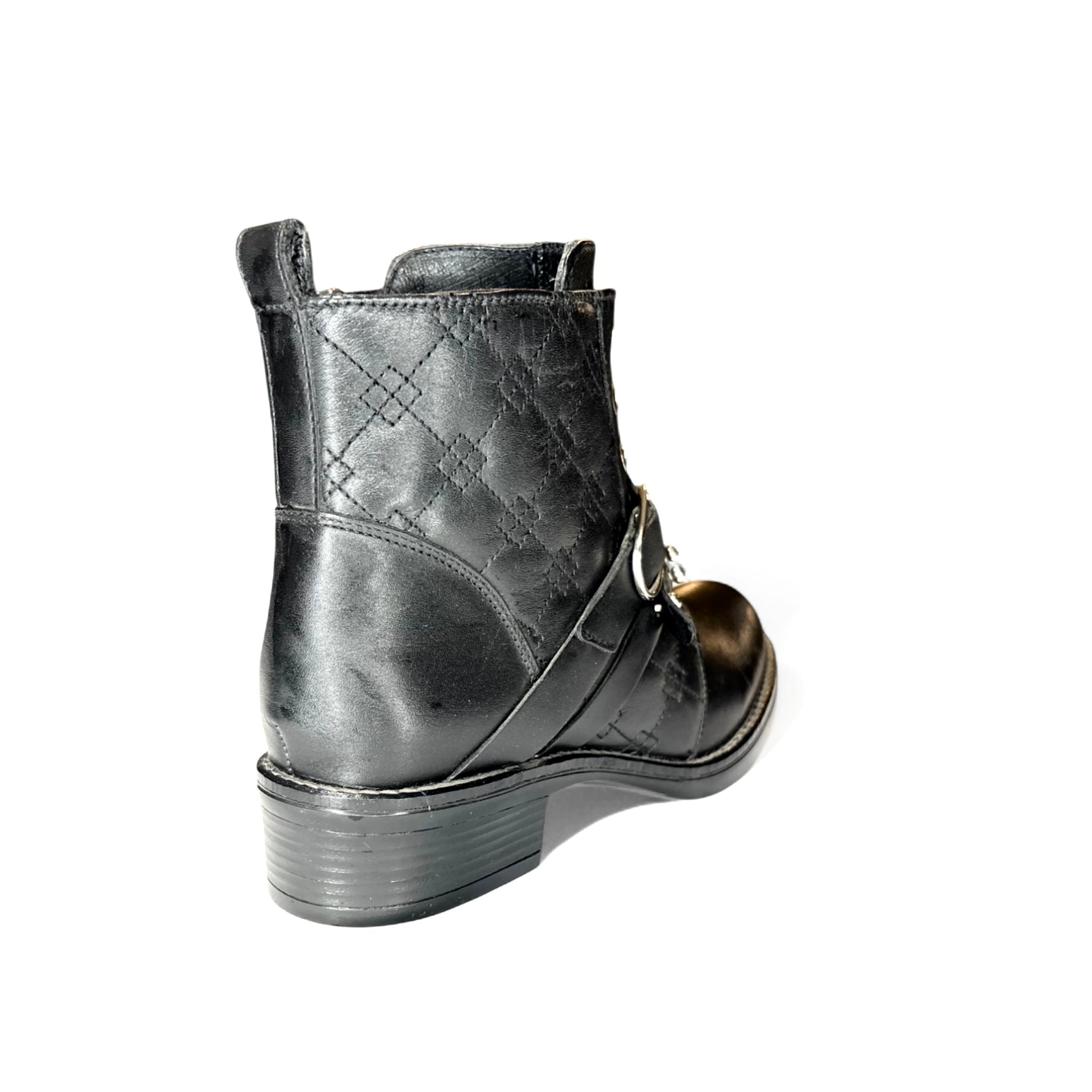 Botín negro con hebilla y textura