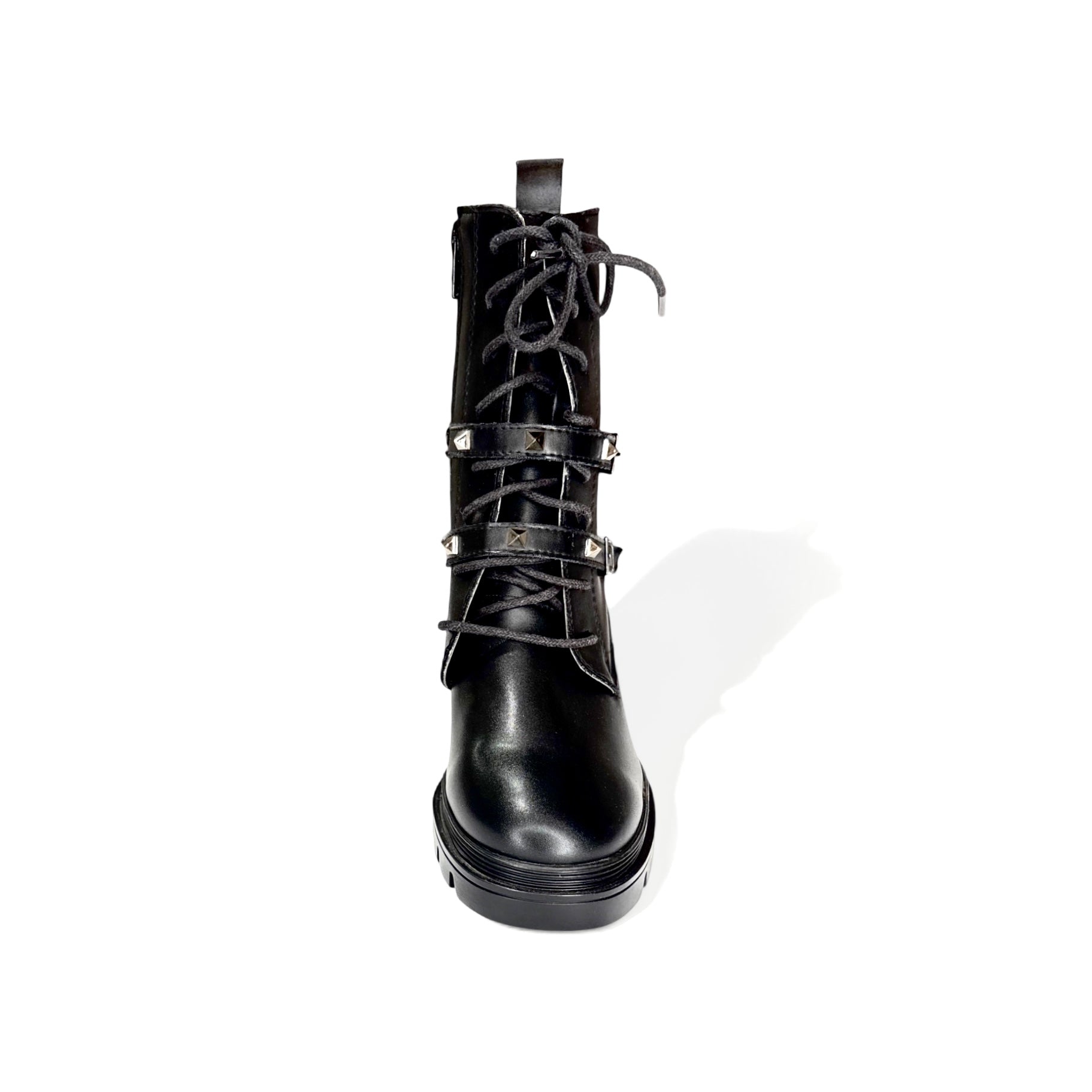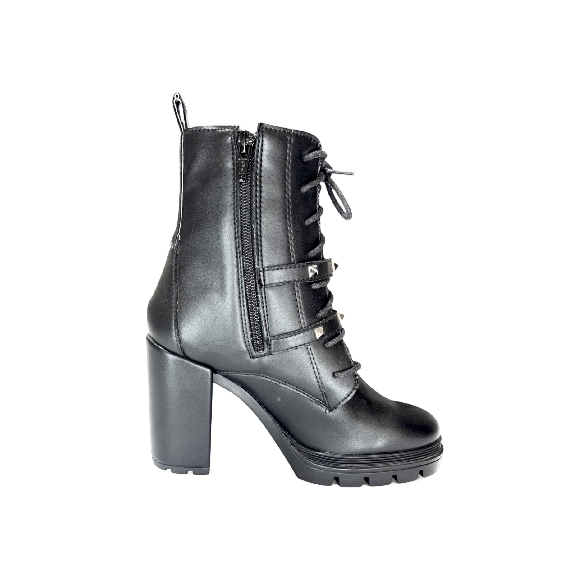 Botín de tacón alto con agujetas, estilo urbano diseño con estoperol.