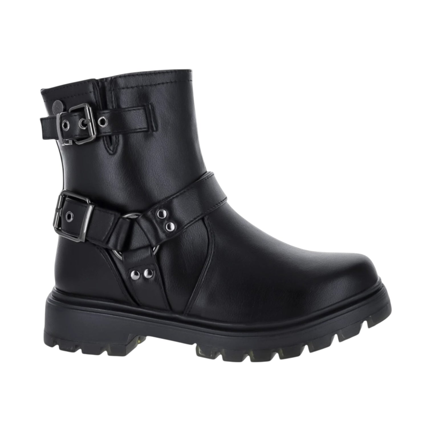 Este botín para niña con plataforma es ideal para darle estilo y comodidad a sus pasos. Su diseño moderno incluye herrajes decorativos que le dan un toque fashion y divertido, mientras que la plataforma ligera ofrece mayor estabilidad y confort. Perfectos para usar con jeans, vestidos o looks casuales. Un botín resistente, cómodo y súper combinable para cualquier ocasión.