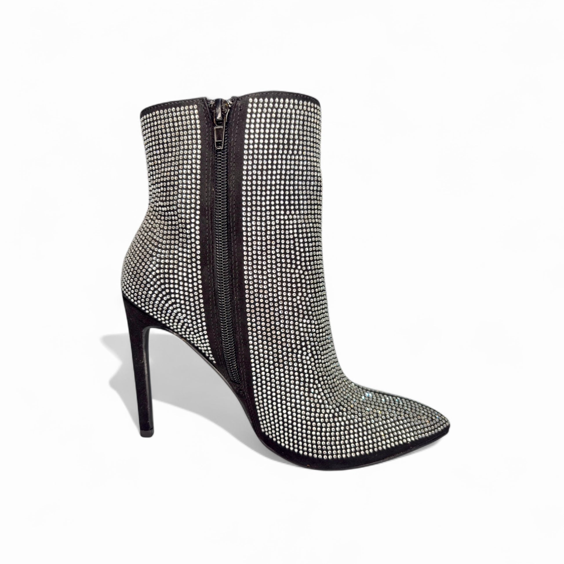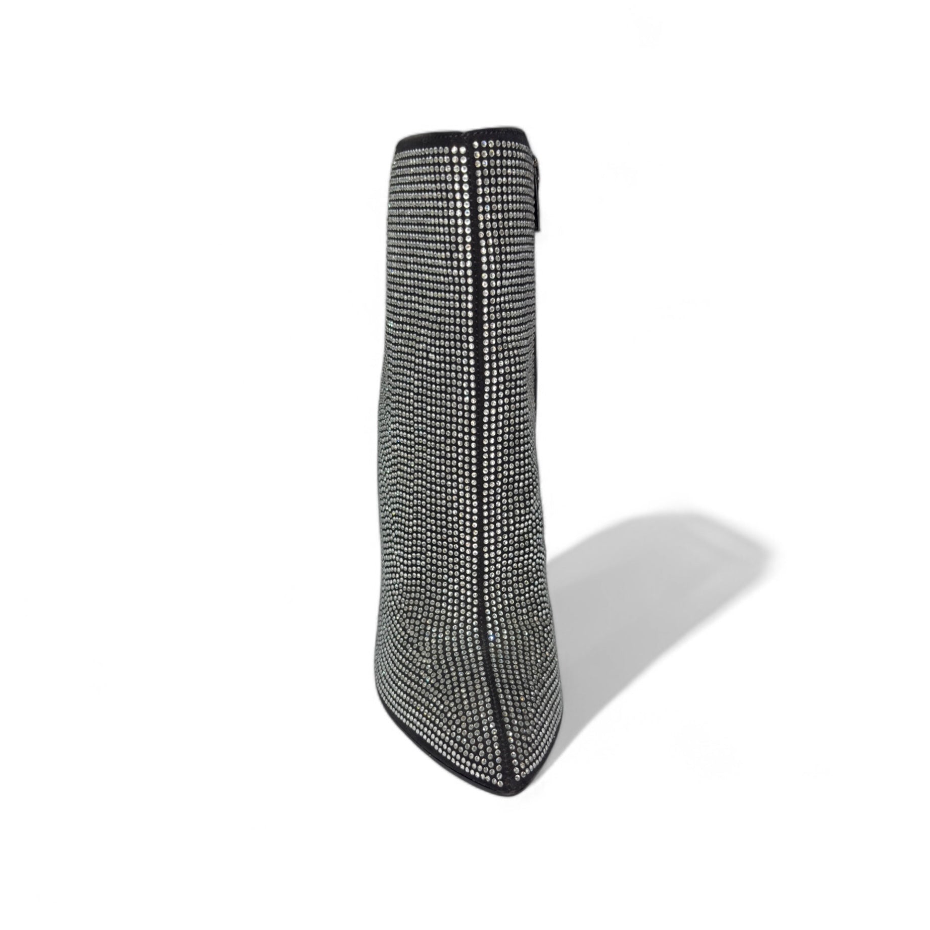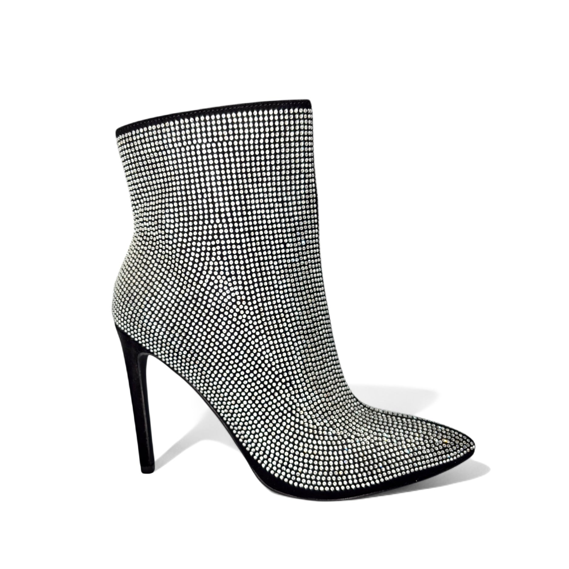 Botín negro cubierto de cristales con tacón alto. Glamour y sofisticación para un look impactante de noche. Brillos