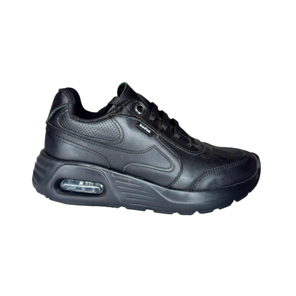 Comodidad, durabilidad y estilo en un solo modelo. Este tenis completamente negro está diseñado especialmente para el uso escolar diario. Fabricado con materiales resistentes y de fácil limpieza, incorpora cámara de aire en la suela, ofreciendo una excelente amortiguación y soporte en cada paso.