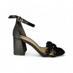 Elegancia y comodidad en un solo diseño. Esta sandalia de tacón ancho presenta un acabado en color negro con dos tiras frontales trenzadas que le dan un toque moderno y sofisticado. Su pulsera al tobillo con hebilla ajustable garantiza un ajuste perfecto y seguro. La plantilla acolchada en tono nude proporciona mayor confort, ideal para usar durante horas. Perfecta para elevar cualquier look, desde un outfit casual hasta uno más formal.