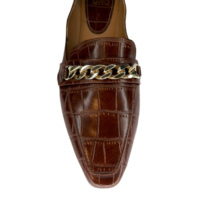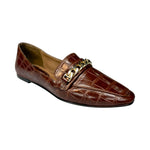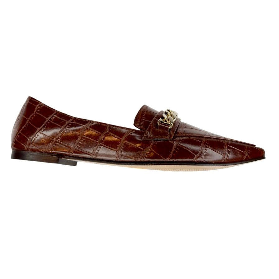 Elegancia natural en cada paso. El modelo Flat Croco Style en color café está diseñado para estilizar visualmente tu pie gracias a su silueta delgada y acabados refinados. Con textura tipo piel de cocodrilo en material sintético, este flat aporta un toque sofisticado y moderno a cualquier look. Su diseño de piso lo hace ideal para el día a día, combinando estilo y comodidad sin esfuerzo.