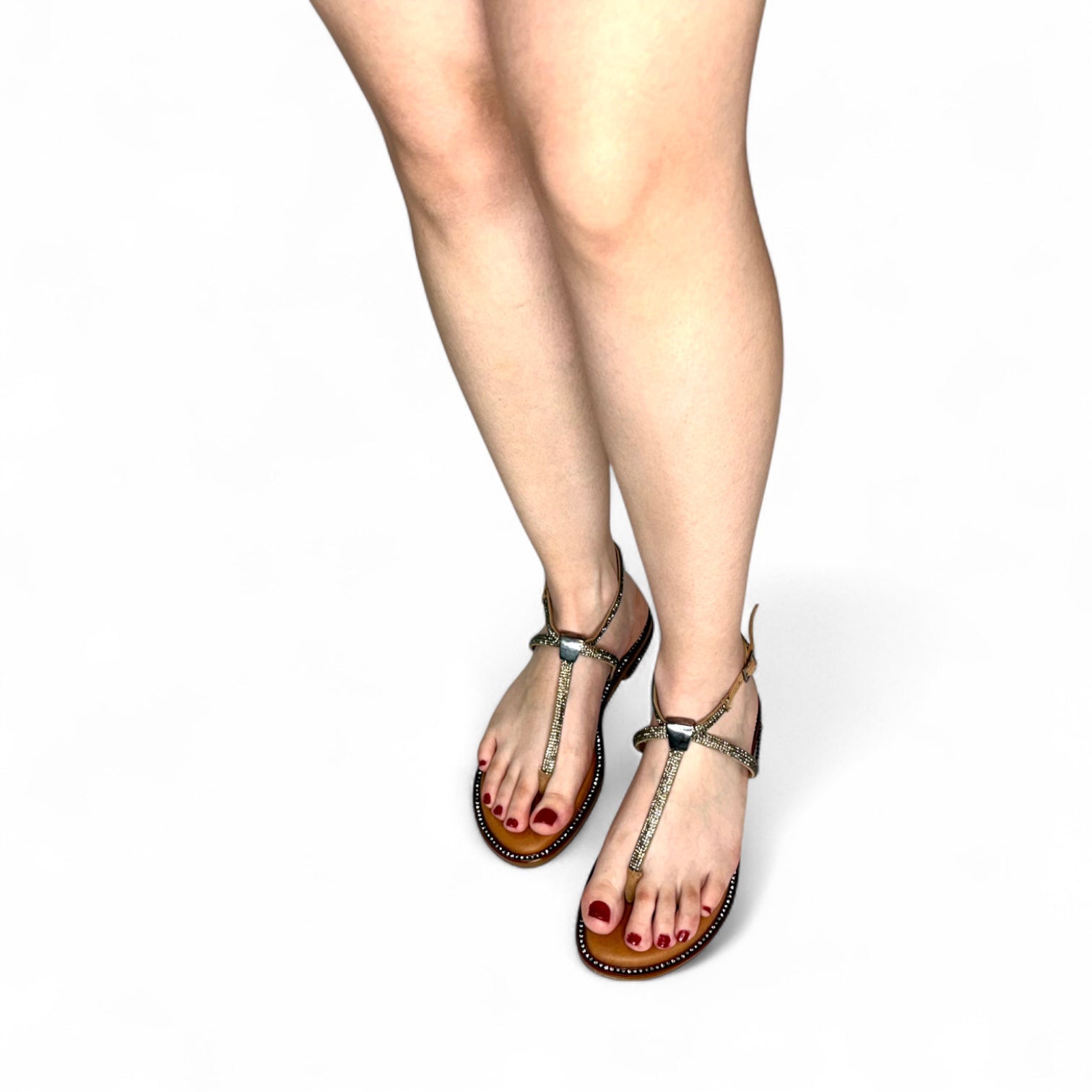Sandalia con diseño de dedo y piedras – comodidad y brillo para cada paso
