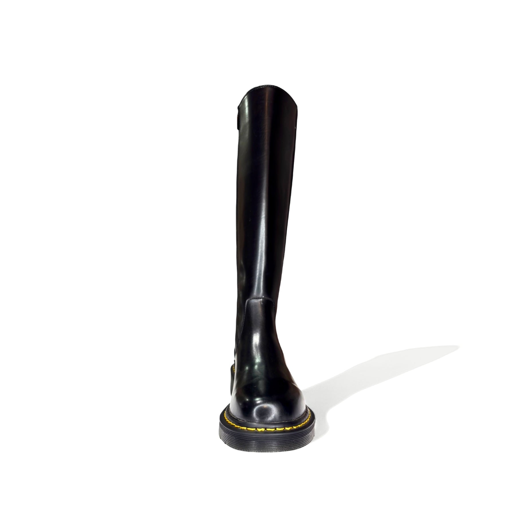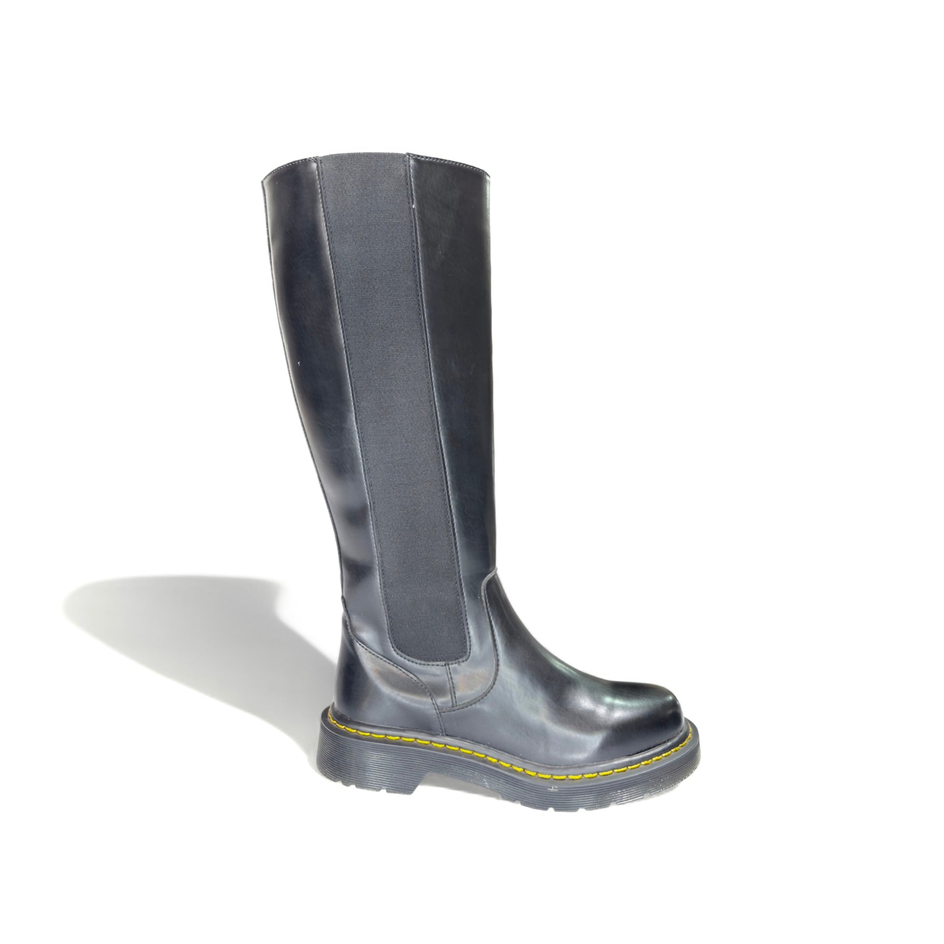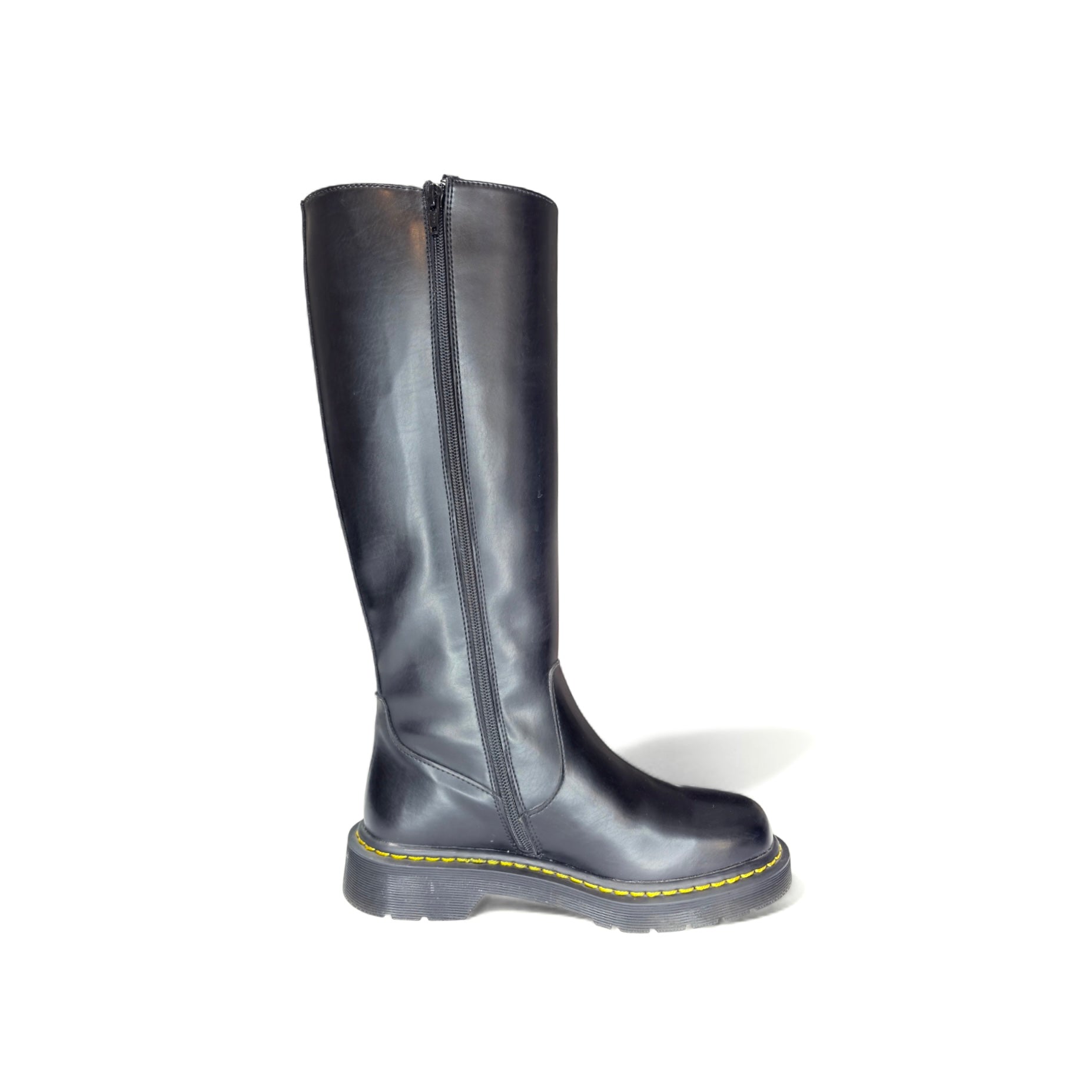 Bota alta negra con suela dentada (mujer) suela con costura amarilla