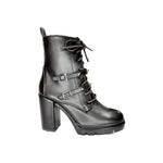 Botín de tacón alto con agujetas, estilo urbano diseño con estoperol.