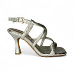 Brilla con elegancia en cada paso con esta zapatilla de fiesta en color plata, diseñada para destacar sin sacrificar comodidad. Su tacón estilizado simula el clásico tacón de aguja, pero con una estructura más estable y ligera.