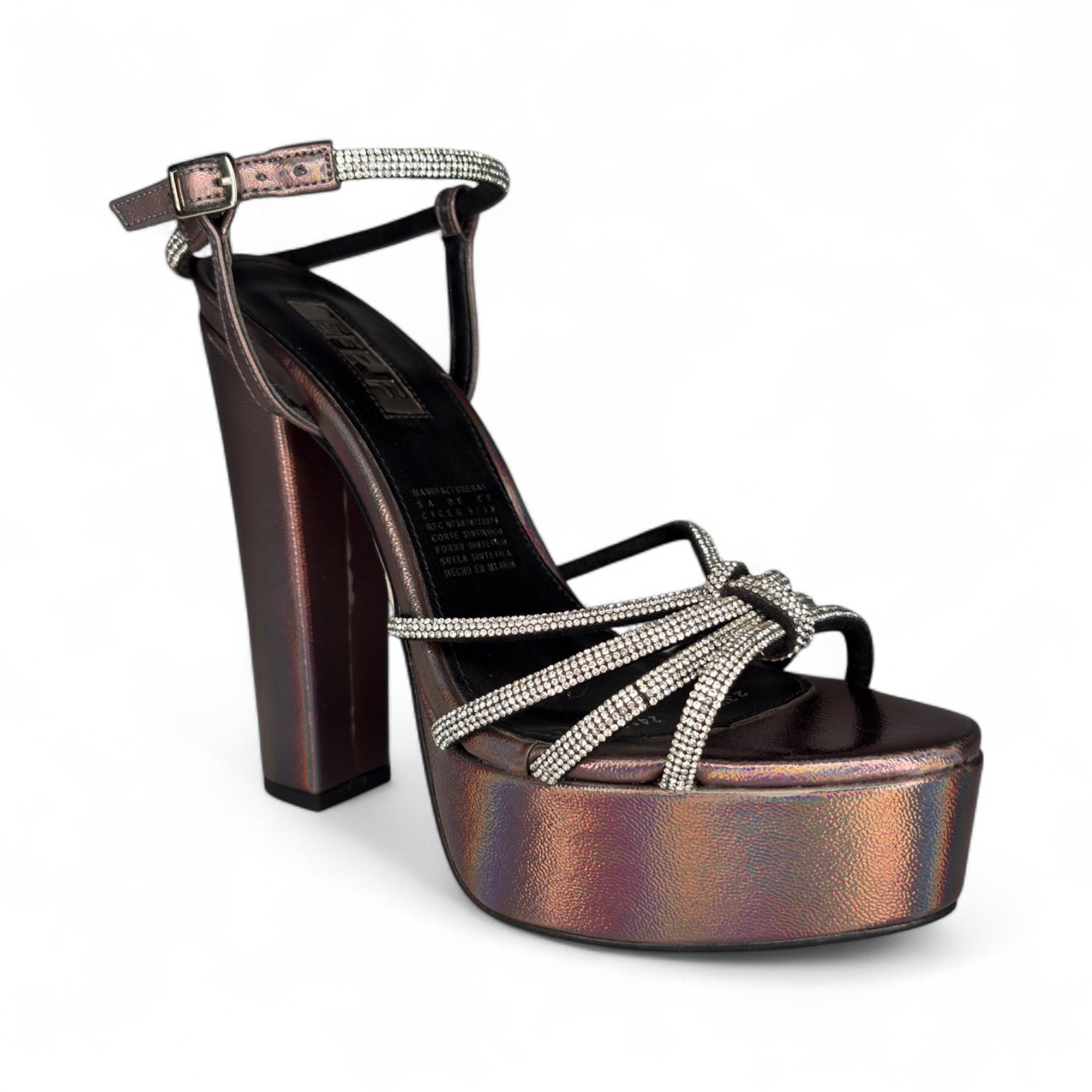 Cuenta con plataforma y tacón alto que estilizan tu figura sin sacrificar comodidad, convirtiéndola en la opción perfecta para fiestas, eventos o salidas especiales donde quieras destacar con elegancia y un toque moderno.