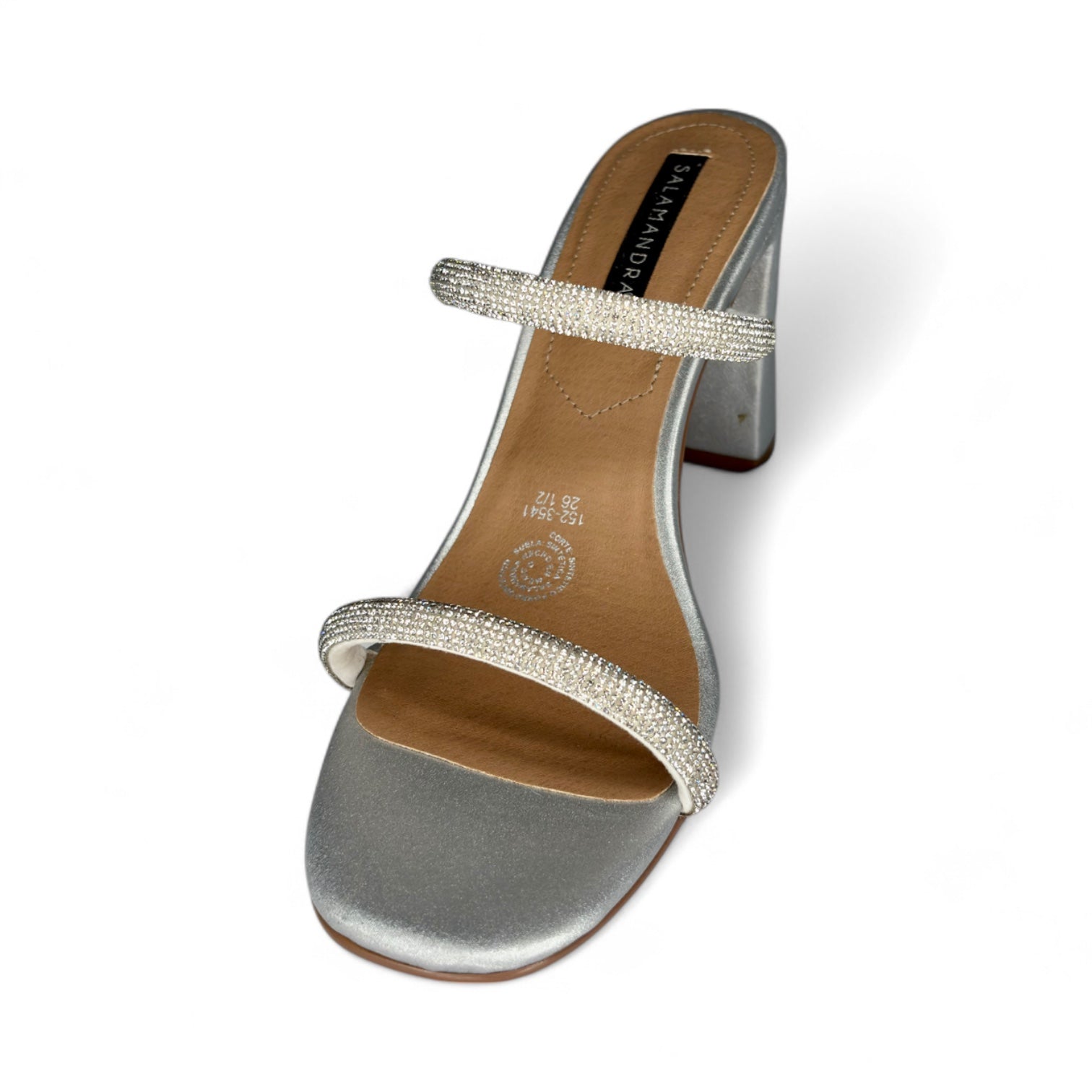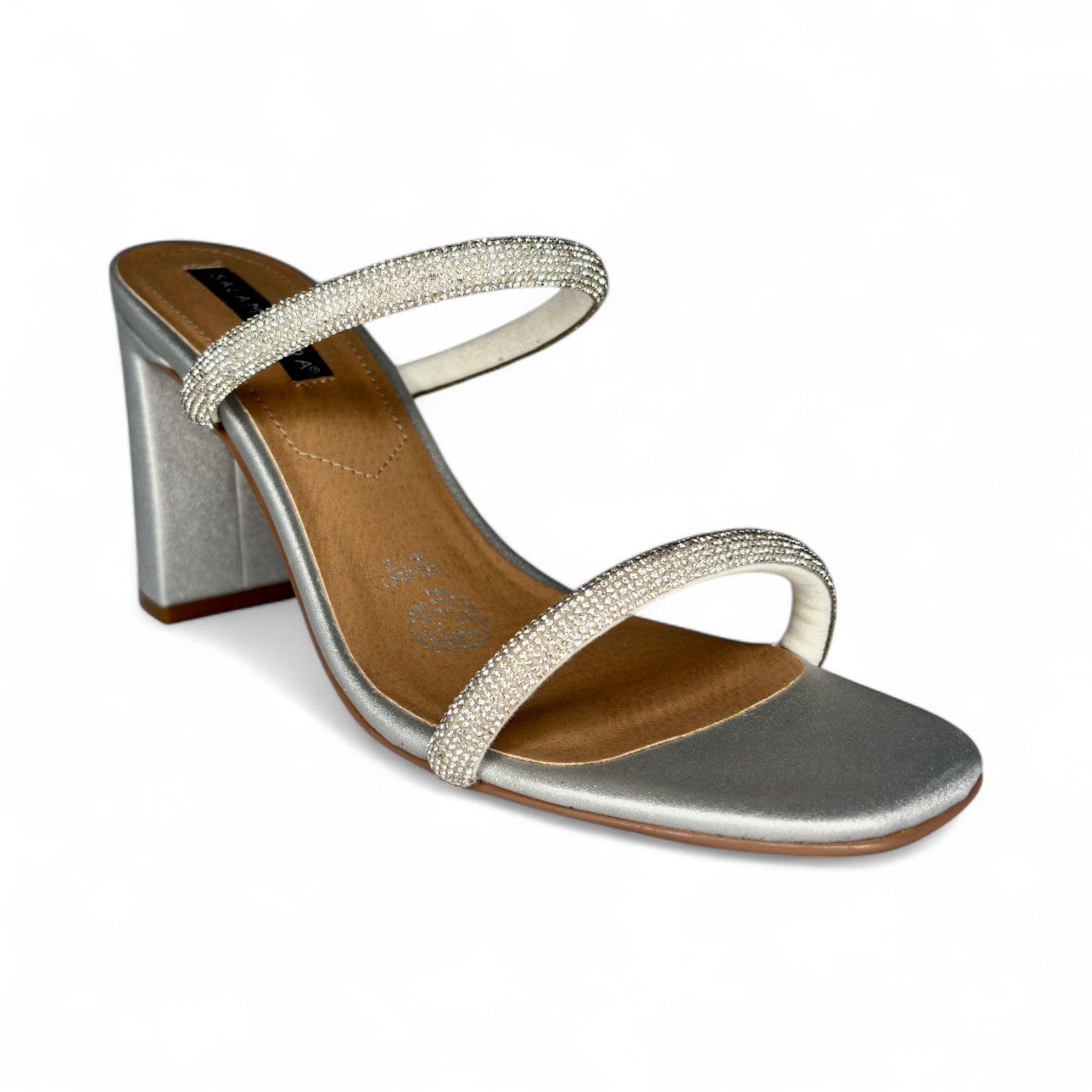 Destaca con esta hermosa zapatilla en color plateado, diseñada con un cómodo tacón cuadrado que brinda estabilidad sin perder estilo. Su diseño minimalista de dos tiras está realzado con delicados brillos que captan la luz y le dan un toque glamuroso y sofisticado.