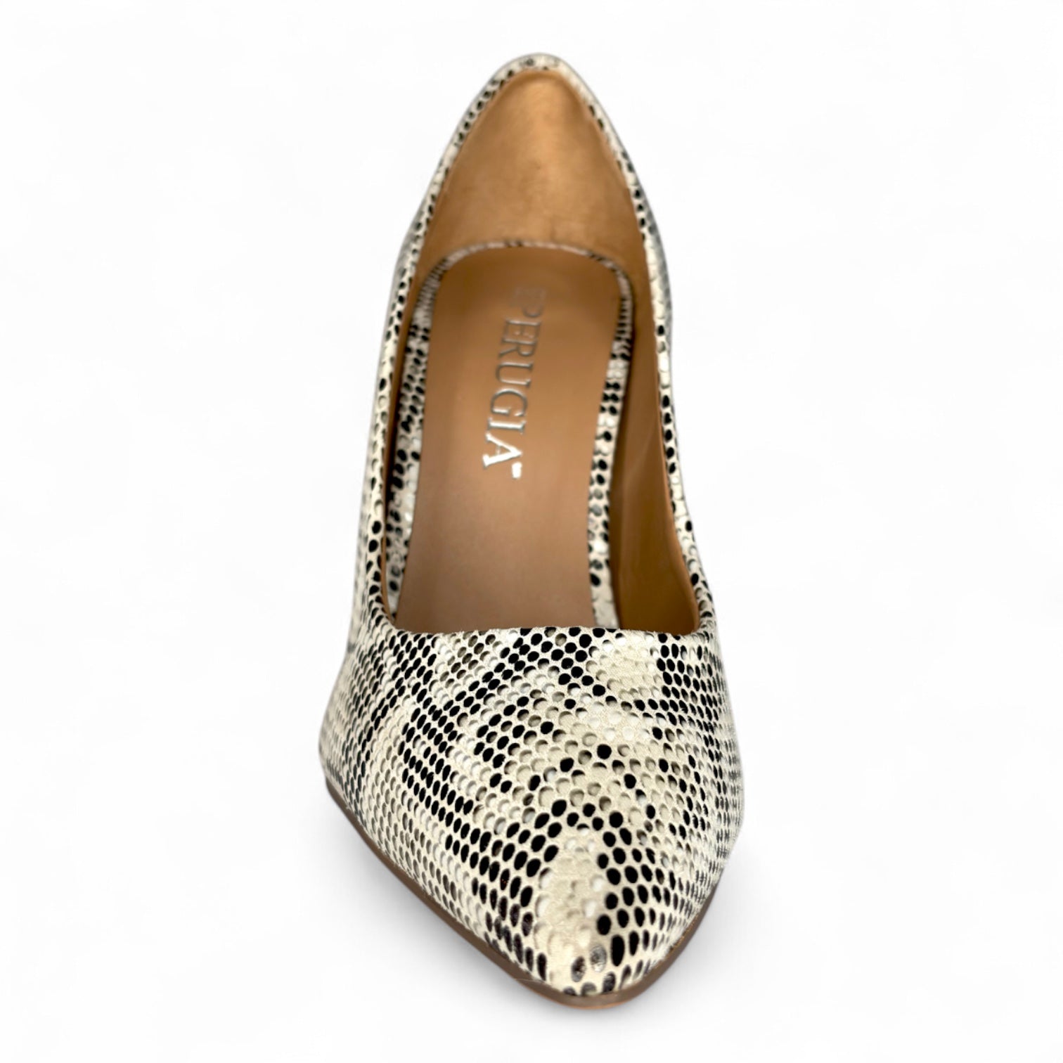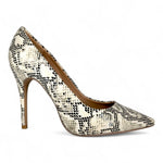 Zapatilla de pico con tacón de aguja, diseñada para imponer elegancia y estilo en cada paso. Su combinación en blanco con negro y estampado tipo víbora aporta un toque audaz y sofisticado, ideal para destacar en eventos formales o looks urbanos con carácter. El tacón de aguja realza la silueta con firmeza y actitud, convirtiéndola en una pieza infaltable en tu colección de calzado.