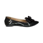 Luce un estilo refinado con estos elegantes zapatos de piso en charol, diseñados con un sutil y moderno grabado tipo cocodrilo que aporta un toque de distinción. Su detalle de moño al frente añade feminidad y encanto, convirtiéndolos en el complemento perfecto para tus looks de oficina, salidas casuales o eventos especiales.