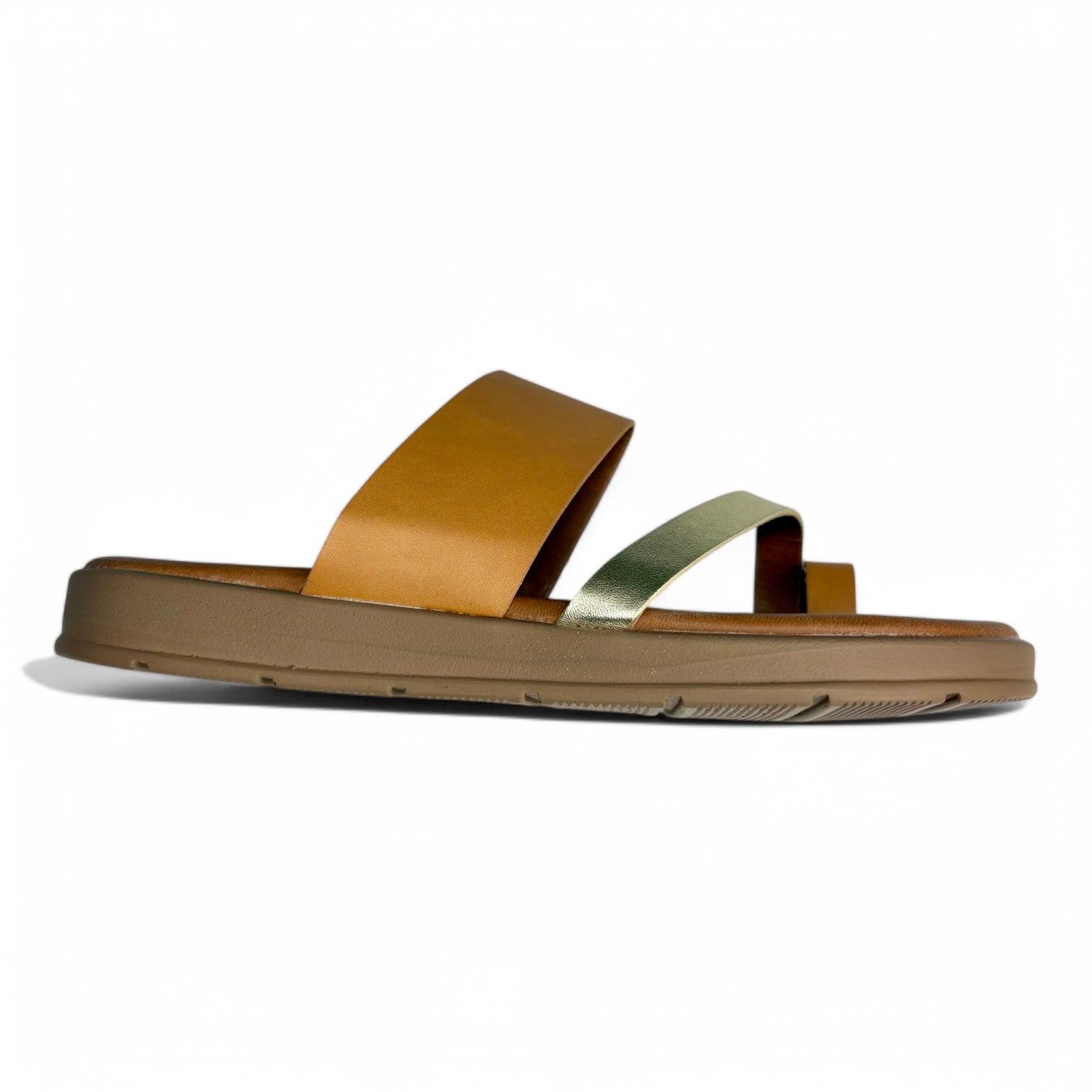 Sandalia Dedo Confort en Oro y Café – Estilo y Comodidad en Cada Paso