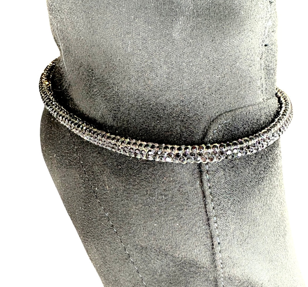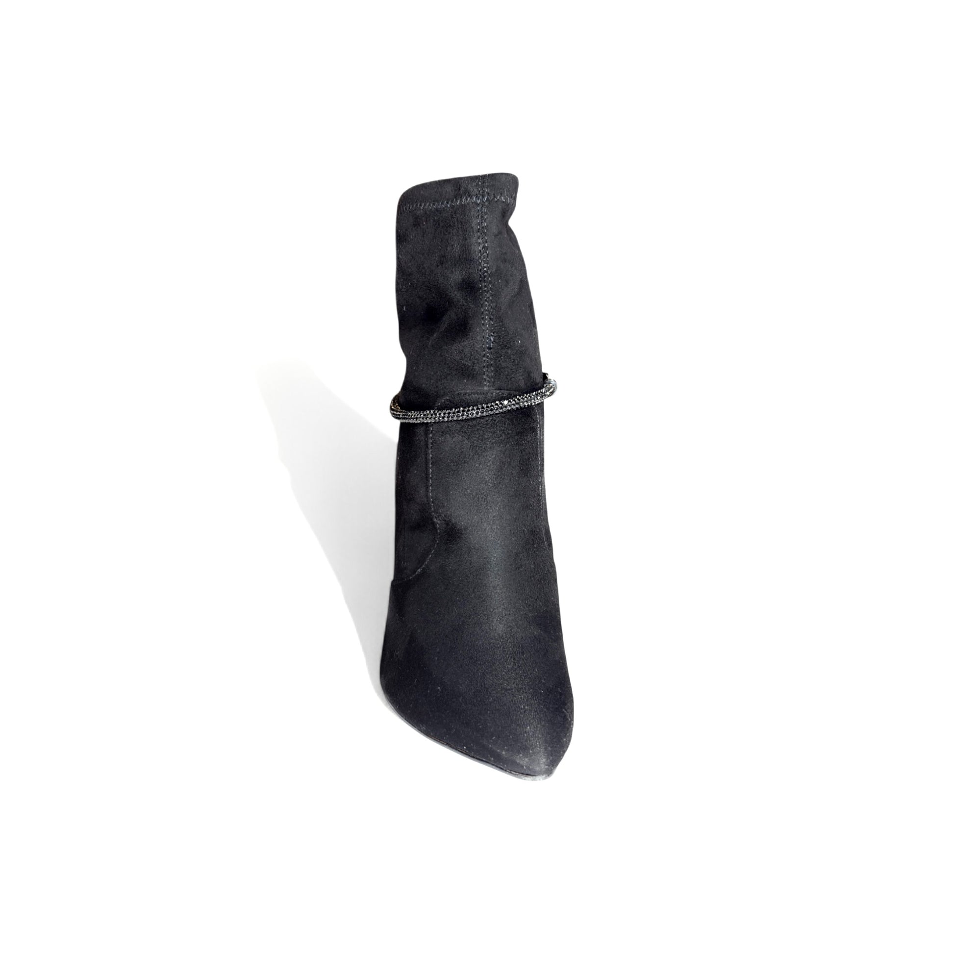 Luce sofisticada con este botín negro de tacón alto, decorado con una pulsera tipo cadena en el tobillo. Un diseño femenino, elegante y moderno.