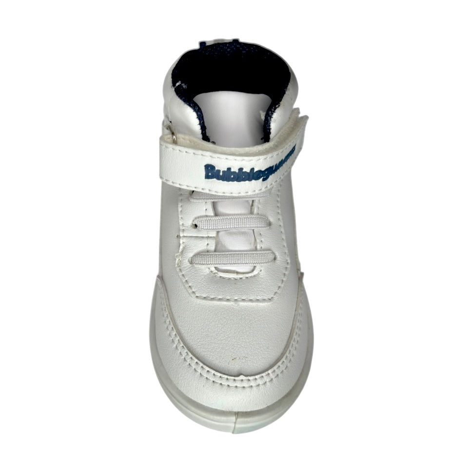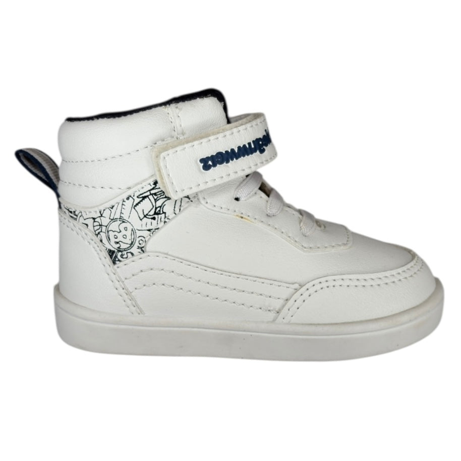 Este moderno tenis tipo bota de Bubblegummers es perfecto para los pequeños que aman el estilo urbano y la comodidad. Confeccionado en color blanco con un divertido estampado lateral en negro, añade un toque creativo y original. Incluye cierre de velcro y agujetas elásticas para un ajuste práctico y seguro.